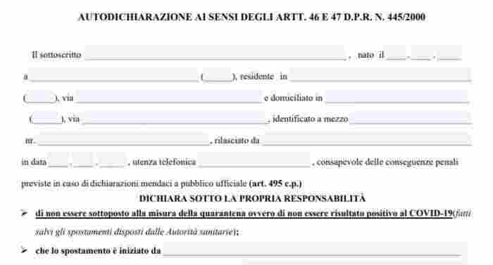L’autodichiarazione è in possesso degli operatori di polizia e può essere compilata al momento del controllo.