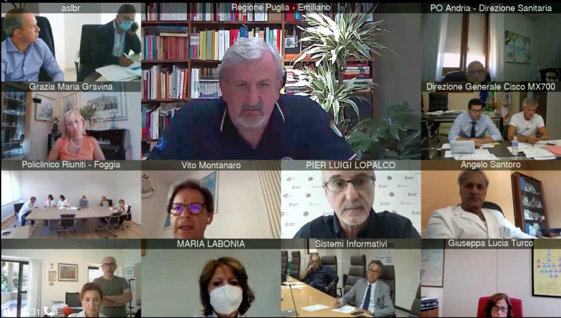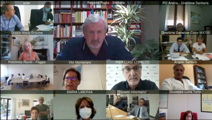 Si è tenuta oggi una riunione con i direttori generali delle ASL pugliesi, i dipartimenti di prevenzione, i direttori delle strutture sanitarie pubbliche, enti ecclesiastici e Irccs della rete Covid, i direttori dei laboratori di microbiologia e virologia della rete Covid, presieduta dal presidente della Regione Puglia Michele Emiliano con il direttore del Dipartimento Promozione della Salute Vito Montanaro e alla quale ha partecipato anche il prof. Pier Luigi Lopalco.