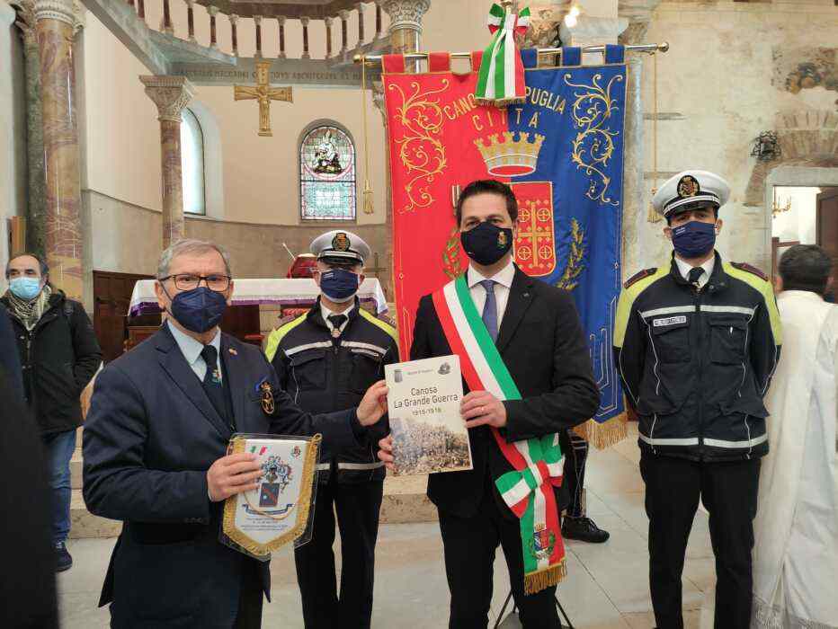 «Ringrazio il M.llo Michele Di Ruggiero – ha detto il Sindaco Roberto Morra – per avermi fatto dono della sua ultima opera che riallaccia i fili della memoria per restituire alla Città del XXI Secolo il Nome e i Volti dei nostri progenitori. “Canosa e la Grande Guerra” rappresenta per noi, uomini e donne del 2020, la Piazza d’Onore, il luogo in cui lasciarsi trasportare dal vento del sacrificio per la Patria, dove ogni volto racconta una storia, diversa ma uguale a tante altre, una storia che si può facilmente ritrovare e rivivere nelle strade e nei vicoli della Canosa di inizio ‘900. Sfogliando le sue pagine, nomi e volti si aprono al nostro sguardo. Ma i loro volti, i loro nomi, sono ancora i nomi e i volti di oggi, i nostri nomi, i nostri volti, discendenti di quegli uomini che hanno dato la vita per la nostra Nazione e ai quali restituire, quotidianamente, la limpidezza del loro esempio. Anche Canosa ha pagato il suo tributo di sangue nel conflitto del 15/18 e il lungo elenco dei canosini deceduti al fronte ne dà testimonianza: oltre 20 pagine di di nomi e dati scorrendo le quali, il primo impulso è quello di ricercare il proprio cognome per potersi riconoscere in quell’omonimo illustre, magari sconosciuto, ma legato a noi da quel nome a cui sentiamo di appartenere. Noi tutti apparteniamo a questi uomini per discendenza, ma anche perché a loro ci lega la nostra terra, la nostra storia, il nome della Città in cui i loro occhi hanno guardato lo stesso cielo che noi guardiamo ogni giorno. Dobbiamo anche a loro il nostro essere cittadini di Canosa: dobbiamo esserne degni».