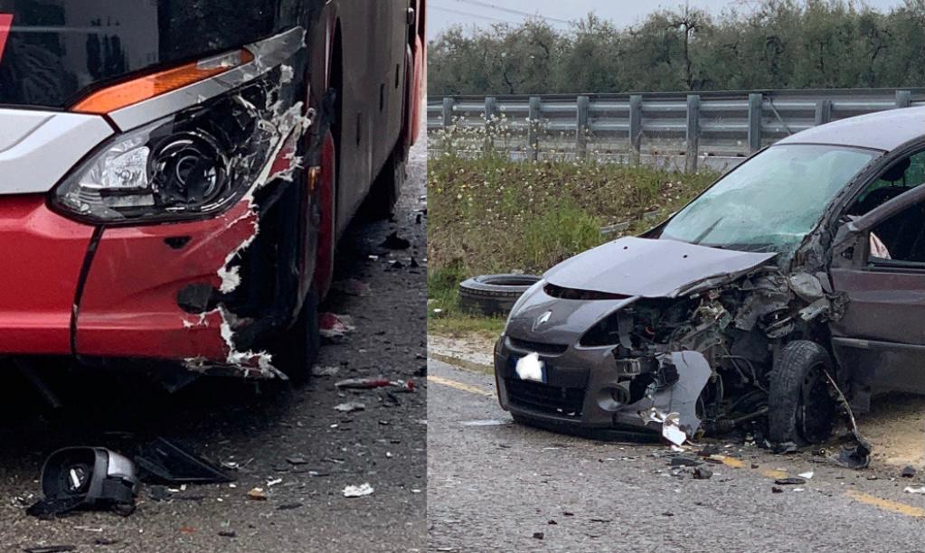Scontro pullman-auto sulla complanare della Sp2 fra Andria e Canosa