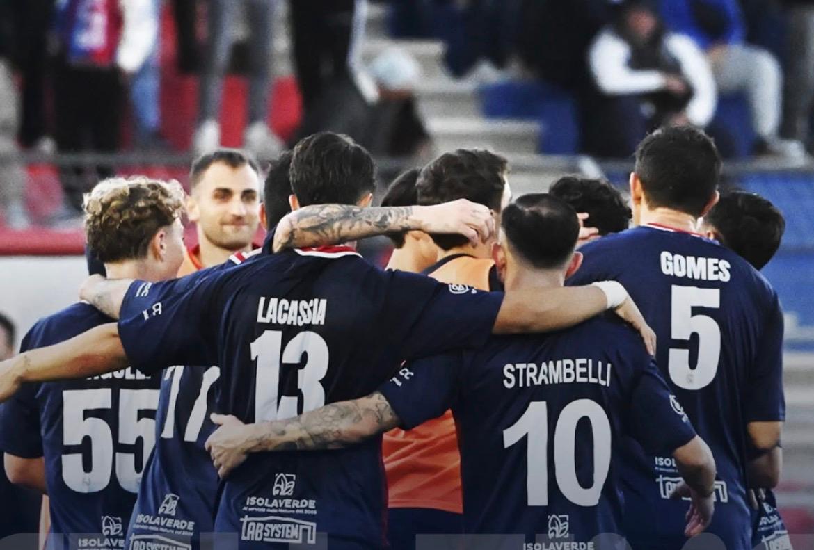 Nel remake della semifinale regionale playoff dello scorso, gli uomini allenati da De Candia la spuntano in fondo ad un match vibrante. L’episodio chiave al 34′: l’ex Barletta Belladonna s’incunea sul fronte sinistro offensivo, scarta in velocità un difensore bianconero e apparecchia al limite dell’area piccola per il tocco vincente con il destro di Caputo, al suo primo gol in maglia rossoblu.